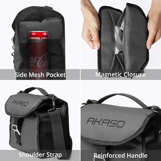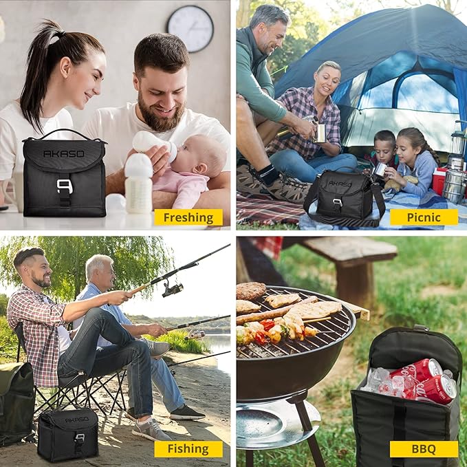 - 24 hours Insulation & Cold: The AKASO cooler bag uses closed-cell NBR foam insulation to keep food and drinks cold up to 24 hours. Tips: The number of ice cubes placed and the ambient temperature will affect the time of refrigeration.