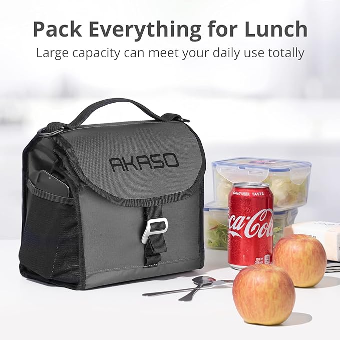 AKASO Insulated Cooler Lunch Bag Packable Lunch Box 12 Can Cooler Bag with Adjustable Shoulder Strap for Office Picnic, Dark Gray